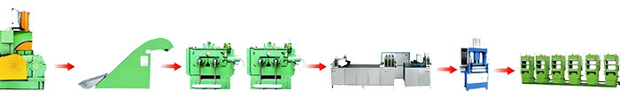 This is rubber compounding line set of machine consisting mixer, elevator, mixing mill, whirlwind barrel, vibrating conveyor and horizontal mixer. This is the process layout for rubber compounding to produce rubber compounding material to make rubber shoes. This specification and sizes may differ upon the volume and quantity of production.
