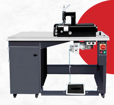Insoling machine for California style aesthetic shoes, also suitable for sewing working gloves, furs of medium thickness diving suits, and children suits. Automatic lubrication for longer service life, no oil leakage problem due to special design. Better handling due to extra large clearance under front cup arm. Easy adjustment of stitch length by push button. Designed for easy operation.